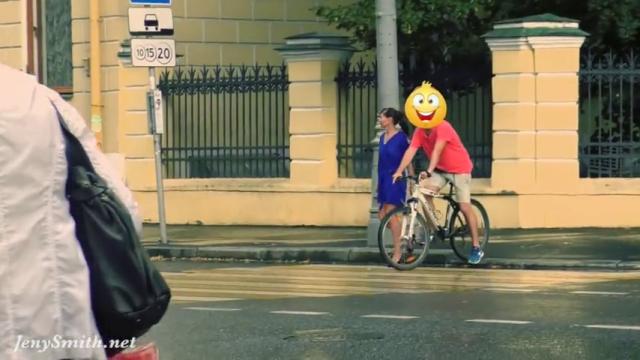 Голая девушка на улице - это лучше любого фильма и отдыха. Сейчас вы увидите прикол, как парень на велосипеде случайно срывает платье с девушки, и она голая на каблуках пытается его догнать. Ну, а пока обнаженная девушка пытается вернуть себе платье, прохожие любуются ее красивыми ногами, попкой, сиськами и киской.